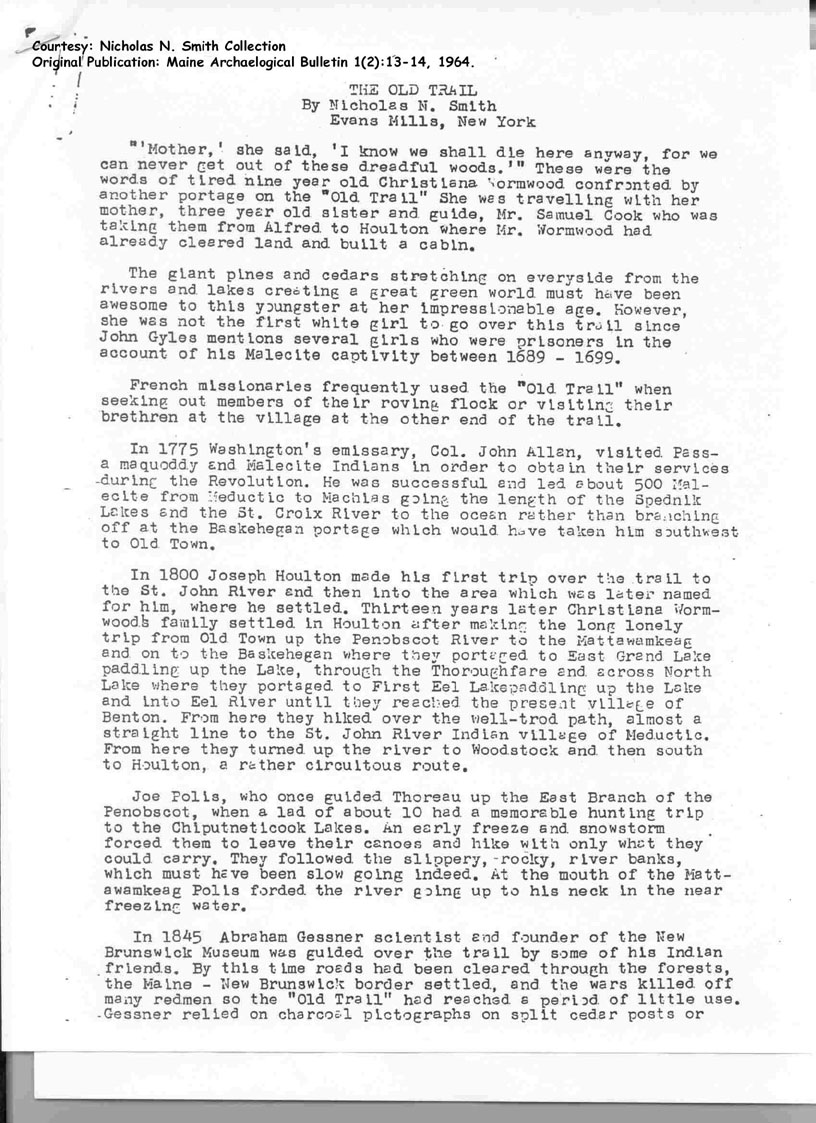 The Maliseet Trail Crossing of 1964 by Dr. Peter Lewis Paul