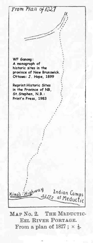 WF Ganong's Map No. 2 The Meductic - Eel River Portage. From a plan of 1827.