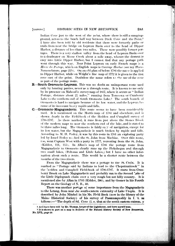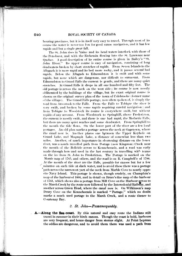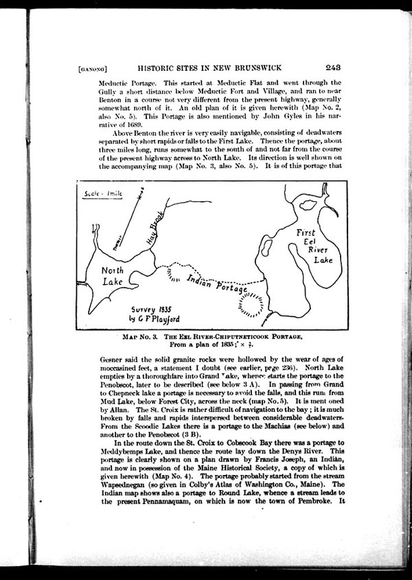 WF Ganong's 1899 Text on 45 Pre-Contact Portage Routes in the Province of NB Back Paddle Routes of Travel in NB. Pgs 233-239 -1) Along the St. John. Pgs 239-240 -2) St. John-Passamaquoddy. Pgs 240-244 -3) Passamaquoddy-Penobscot. Pgs 244-245 -4) St. John-Penobscot. Pgs 245-246 -5) St. John-Petitocodiac. Pgs 246-247 -6) St. John-Richibucto. Pg 248 -7) Petiticodiac-Richibucto. Pgs 248-250 -8) St. John-Miramichi. Pgs 251-253 -9) Richibucto-Miramichi. Pgs 253-254 -10) St. John-Nepisiquit. Pg 254 -11) Miramichi -Nepisiquit. Pg 255 -12) St. John-Resticouche. Pg 256 -13) Nipisiquit-Resticouche. Pg 256-257 -14) Restigouche-St. Lawrence Pgs 257 -15) St. John-St. Lawrence Pgs 257-259 Back Paddle