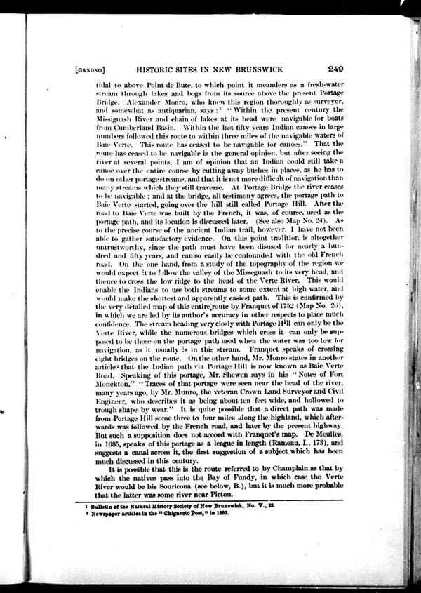 WF Ganong's 1899 Text on 45 Pre-Contact Portage Routes in the Province of NB