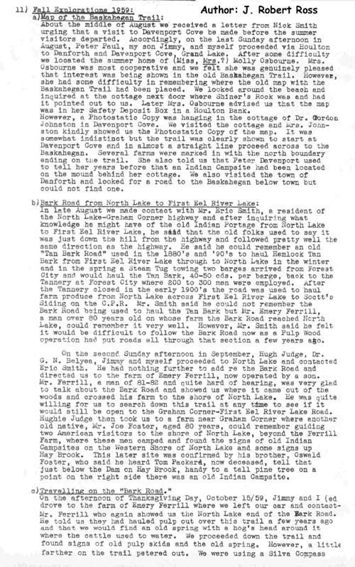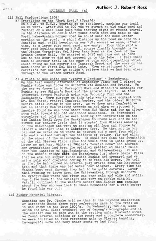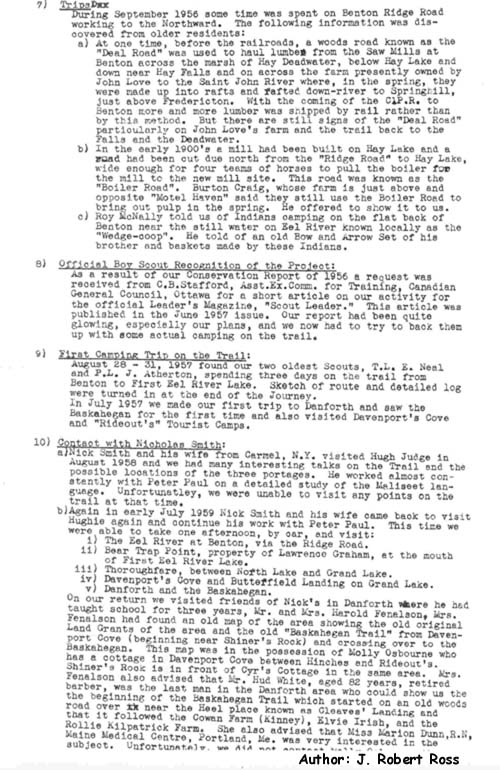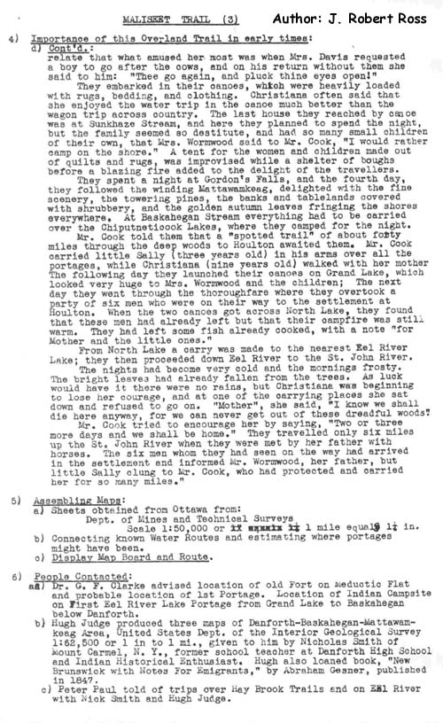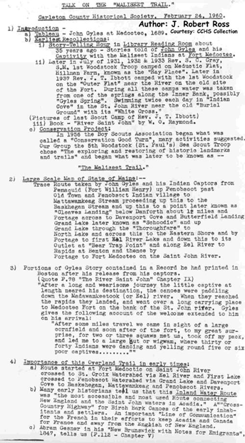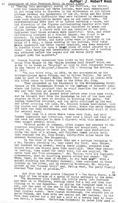 Sammy Says: "Another enjoyable read. RJ Ross lived in Woodstock NB and was a major contributor to the rediscovery of the Trail in the 1950s and 1960s. His research papers on the Trail are being turned over to the Carlton County Historical Society and I have plans to view them asap."