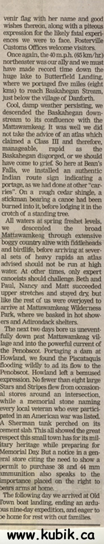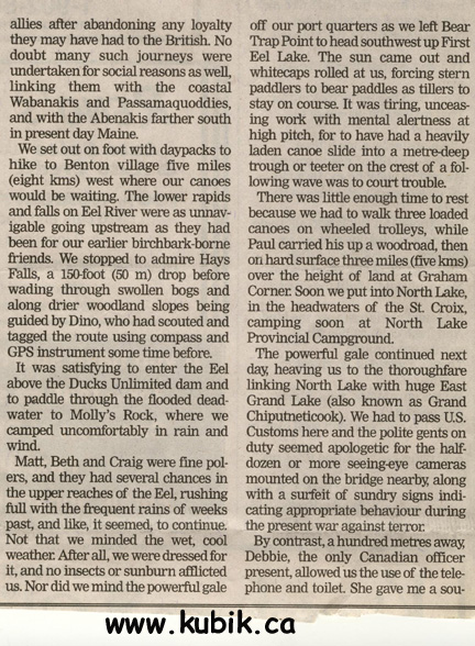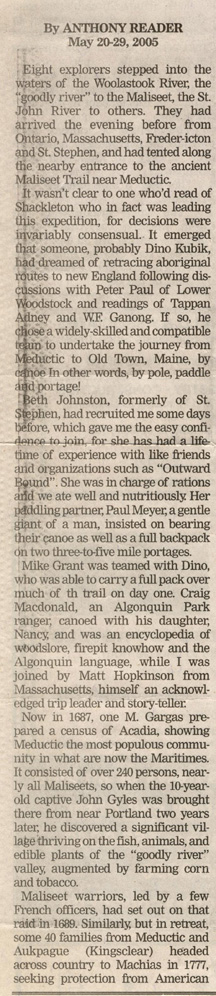 Anthony Reader's Maliseet Trail Expedition as Published in the St. Croix Courier, August 2005.