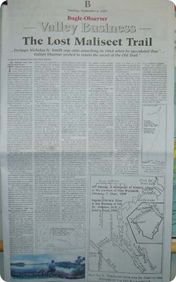 The Maliseet Trail: The Last Hundred Years.Over the last century, this ancient Trail drew the attention and interest of William Francis Ganong, Dr George Frederick Clarke, Nicholas N. Smith, Dr. Peter L. Paul, J. Robert Ross, Patrick Polchies and Martin Paul. Over the last 50 years, the exact route on Ganong's 1899 sketched maps were contested and debated but no advancements in mapping the Trail were published. One Trail authority speculated that Native Shamans were using supernatural powers to hide the Trail and prevent a successful passage.